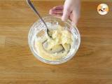 Wenn die Mischung zu schwer zu verrühren ist, zögern Sie nicht, etwas Milch hinzuzufügen. Dann die Milch nach und nach unter Rühren hinzufügen.