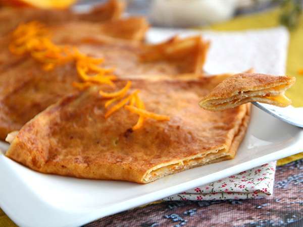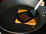 Die so gefalteten Crêpes in einer heißen Pfanne mit etwas Butter anbraten.