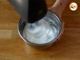 Schlagen Sie das Eiweiß auf und fügen Sie beim Schlagen nach und nach den Zucker hinzu.