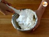 Sahne und Mascarpone schlagen, bis eine Schlagsahne entsteht. Zitronensaft und -schale dazugeben und gut mit dem Spatel vermischen.