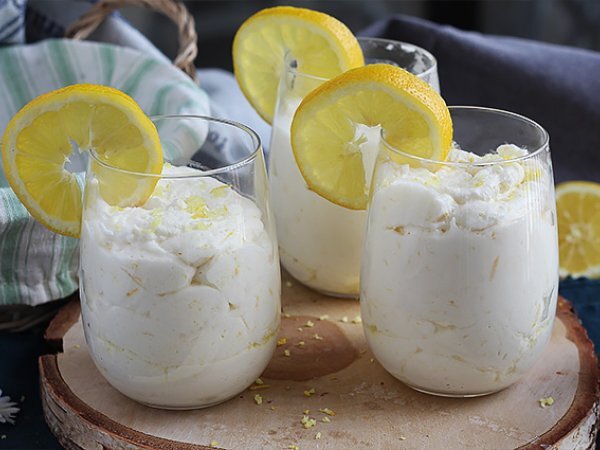 Die Zubereitung der Zitronenmousse dauert nur 5 Minuten, aber sie muss für 12 Stunden im Kühlschrank ruhen.