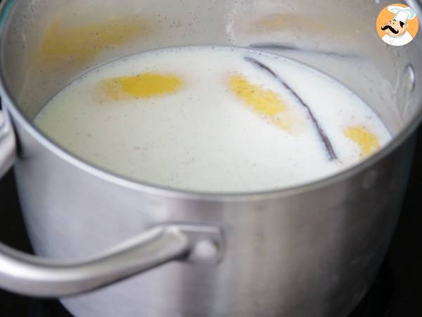 Die Milch und das Wasser bei mittlerer Hitze erhitzen.