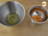 Trennen Sie das Eigelb vom Eiweiß. Das Eiweiß sehr steif schlagen.