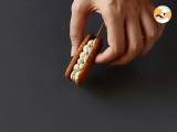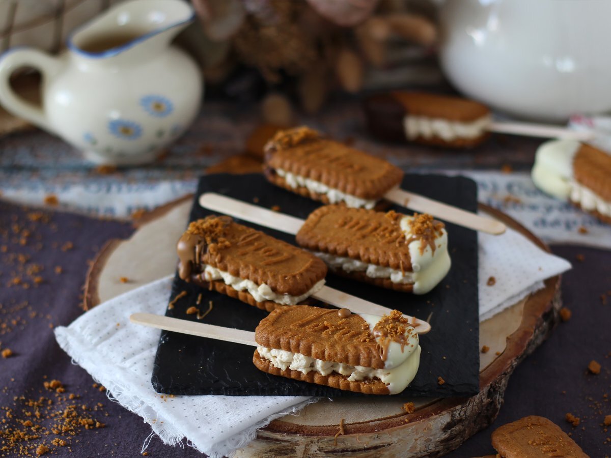 In der Familie begrüßen wir das Sandwich-Eis mit Spekulatius für einen unwiderstehlich leckeren Snack zwischendurch! Ja, ja, Sie haben richtig gehört: ein "Sandwich"! Die Spekulatius werden eine köstliche Mascarpone-Sahne beherbergen, nur noch ein kleines Holzstäbchen hineinstecken, ein paar Stunden in den Gefrierschrank und zack, ein köstliches Eis, das perfekt für den Snack zwischendurch geeignet ist! Und für noch mehr Genuss haben wir sie in weiße Schokolade und Milchschokolade getaucht, aber zögern Sie nicht, Ihrer Kreativität bei den Toppings freien Lauf zu lassen!