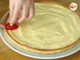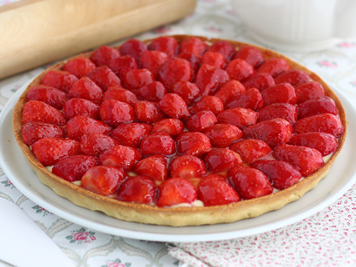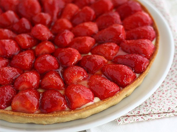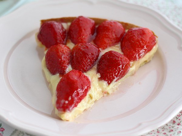 Version fraises cuites : Exit la crème pâtissière, disposez vos fraises sur la pâte sablée pas cuite, saupoudrez légèrement de sucre, et mettez au four 20 min à 180°C.