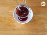 Erhitzen Sie die Marmelade 30 Sekunden in der Mikrowelle und filtern Sie sie, um die Stücke zu entfernen. (Wenn Sie Johannisbeermarmelade verwenden, brauchen Sie es nicht zu filtern).
