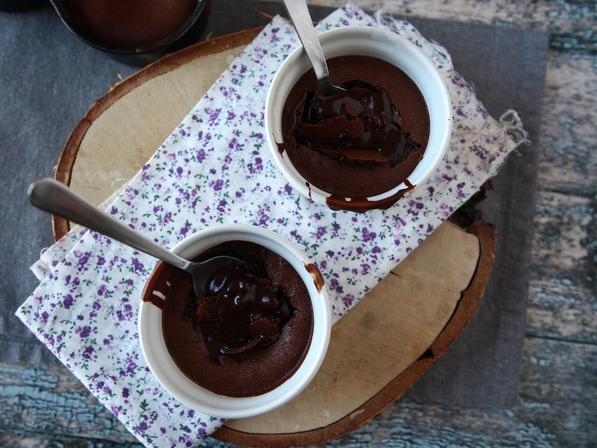 Placer les ramequins dans le air fryer réglé à 210°C. Faire cuire 6 à 7 minutes pour avoir un coeur bien coulant. C'est prêt !