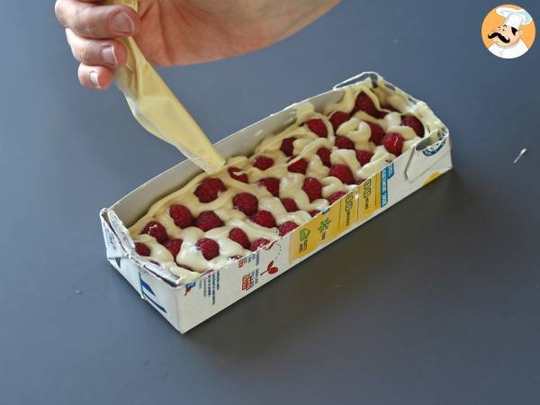 Natürlich haben wir eine Milchpackung verwendet, um das Rezept für alle zugänglich zu machen. Sie können zum Beispiel eine Silikonbackform verwenden. Und wenn Sie eine Form für Schokoladentafeln haben, ist das noch besser! Achtung: Die Menge der Himbeeren und vielleicht auch der Schokolade muss angepasst werden!