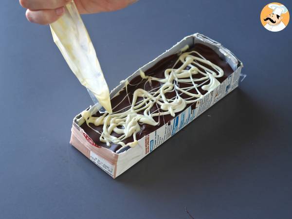 Wenn Sie möchten, können Sie mit dem Rest Ihrer weißen Schokolade kleine Verzierungen anbringen.