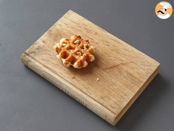 Füllen Sie die Hohlräume der Waffel mit gerösteten Haselnussstücken.