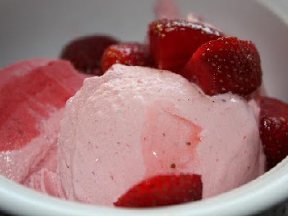 Gestrudeltes vanille-erdbeer-joghurt eis