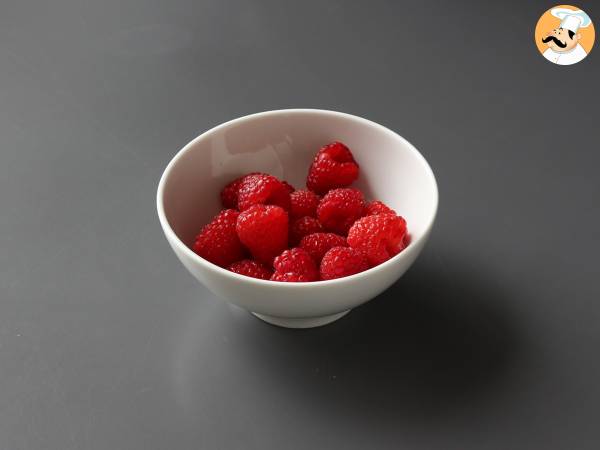 Die Himbeeren vor der Verwendung mindestens 30 Minuten in den Gefrierschrank stellen.