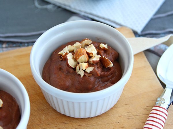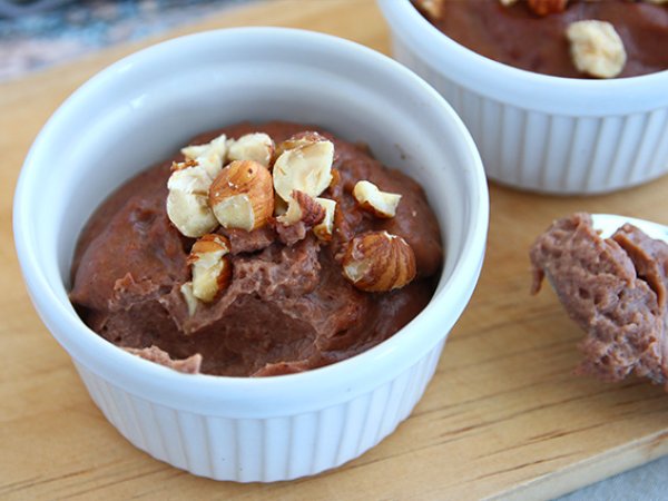 Die Zubereitung in Auflaufförmchen füllen und mit zerstoßenen Haselnüssen bestreuen. 1 Stunde kalt stellen.