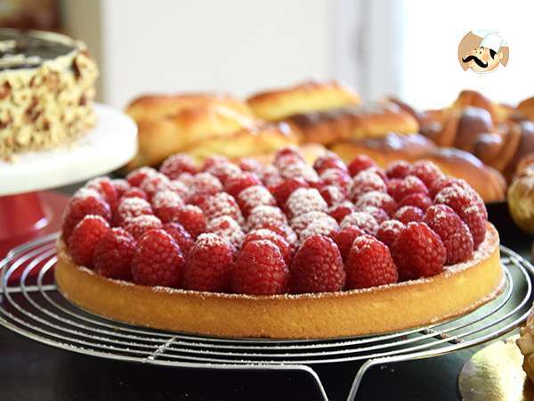 In der Familie ist der Himbeerkuchen eines der klassischen und unwiderstehlichen Desserts! Der knusprige sandige Teig, die schmelzende Creme mit Mandeln und die Fruchtigkeit der frischen und bunten Himbeeren lassen Sie verführen... Hier bieten wir Ihnen ein einfaches und schnelles Rezept an, dessen Zutaten sich sicher schon in Ihren Schränken befinden (oder sogar in Ihrem Garten, falls Sie jemals das Glück haben, gut gefüllte Himbeerbäume zu haben). Ein perfektes Dessert, um Ihre Mahlzeit in Feinheit und Leichtigkeit zu beenden. Zögern Sie nicht, die Formen mit runden, quadratischen Formen zu variieren oder Ihren Teig in mehrere kleine Törtchen zu teilen :-)