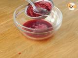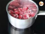 Les framboises : ici elles sont fraîches, mais vous pouvez utiliser des framboises surgelées, voire utiliser du coulis de framboise déjà prêt pour un gain de temps.