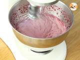Fügen Sie die warme Himbeer-Sauce hinzu. Das Ruhren stoppen und vorsichtig mit dem Spatel vermischen, um die Creme und den Überzug gleichmäßig zu vermischen.