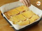 Die Scheiben in eine quadratische Form legen (eingefettet und mit Backpapier ausgelegt).