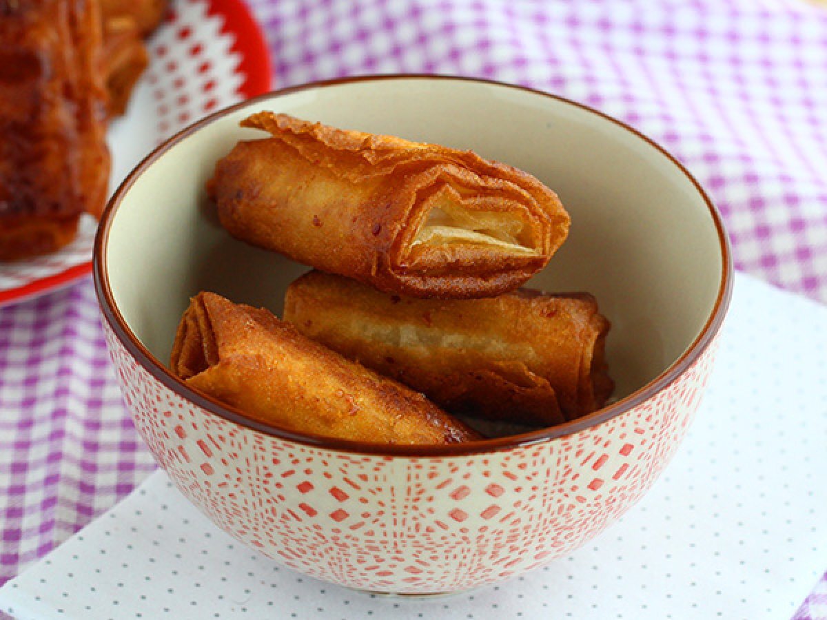 Knusprige bananen mit filoteig