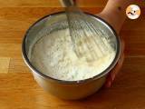 Die Flan-Mischung über das Karamell in die Form gießen.