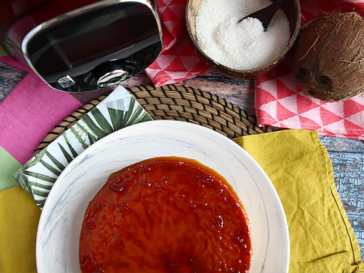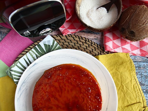 Gießen Sie ein Dessert ganz schnell und einfach mit unserem Kokosflan aus dem Dampfkochtopf. Karamellisiert, zart und fluffig wir er ihnen bestimmt gefallen! Wir erläutern Ihnen alle weiteren Schritte und Einzelheiten im Folgenden ↓ ↓