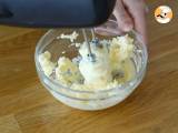 Nach der Gehzeit die Butter in eine Schüssel geben und mit einem elektrischen Rührgerät cremig schlagen.