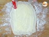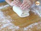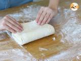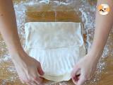 Falten Sie das Teigrechteck in drei Teile, wie auf dem Foto (oder dem Video unten im Rezept) gezeigt.