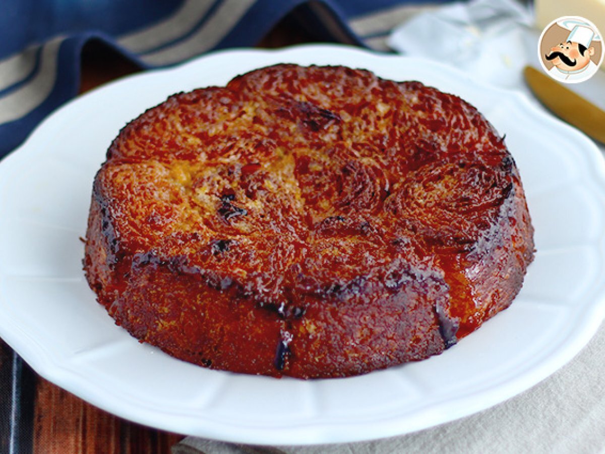 30 Minuten bei 210 °C backen. Stellen Sie ein Tablett unter die Form, um eventuell überlaufendes Karamell aufzufangen.