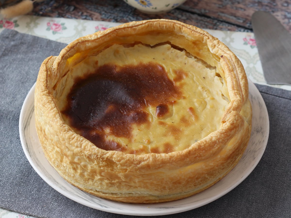 Schneiden Sie aus dem Blätterteig einen Kreis in der Größe der Form aus und legen Sie ihn auf den Boden der Form.