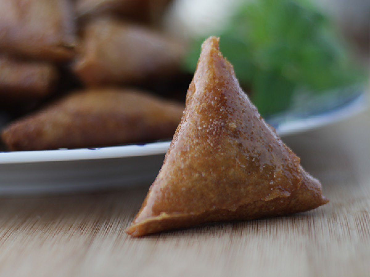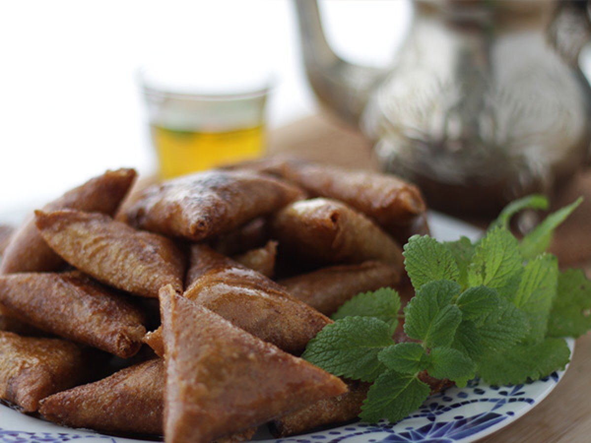 Geschichte: Das Mandeldreieck stammt ursprünglich aus Marokko. Es wird normalerweise während des Monats Ramadan und zu verschiedenen Anlässen wie z. B. Eid hergestellt. Sein Geschmack ähnelt dem von Baklava, einem anderen orientalischen Gebäck. Dieses traditionelle Gebäck wird mit einem gut gesüßten Pfefferminztee verzehrt. Je nach Land, in dem es gebacken wird, ist dieses Gebäck unter verschiedenen Namen bekannt. In Algerien zum Beispiel nennt man diese Dreiecke "Samsa".
