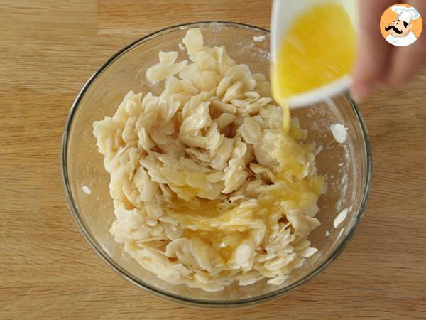 Die Mandelblättchen mit dem Zucker und dem Mehl vermischen.