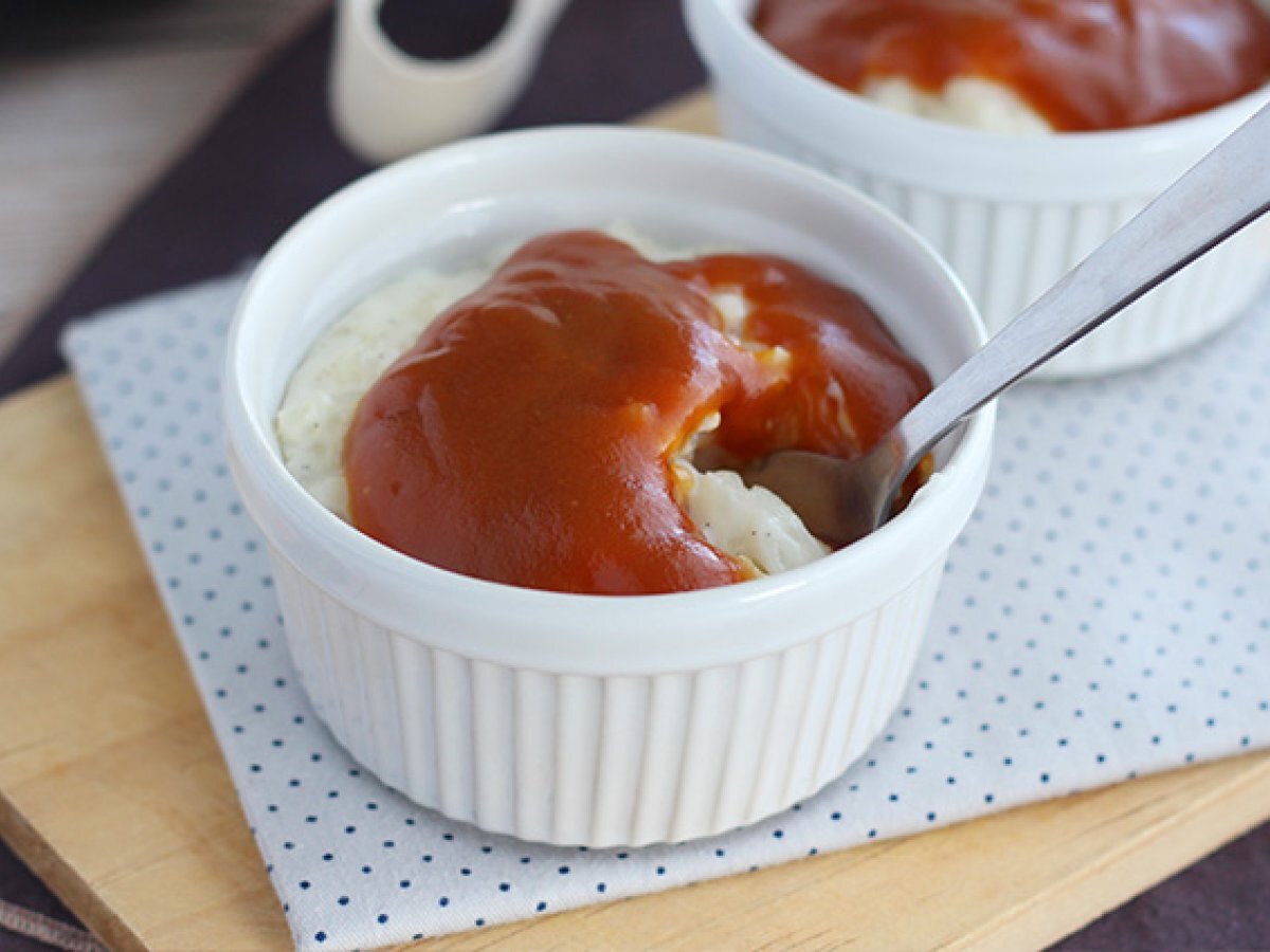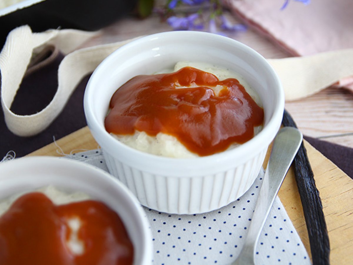 Karamell mit gesalzener Butter: Sie können ihn darüber gießen oder mit Milchreis vermischen, bevor Sie ihn in die Förmchen geben.
