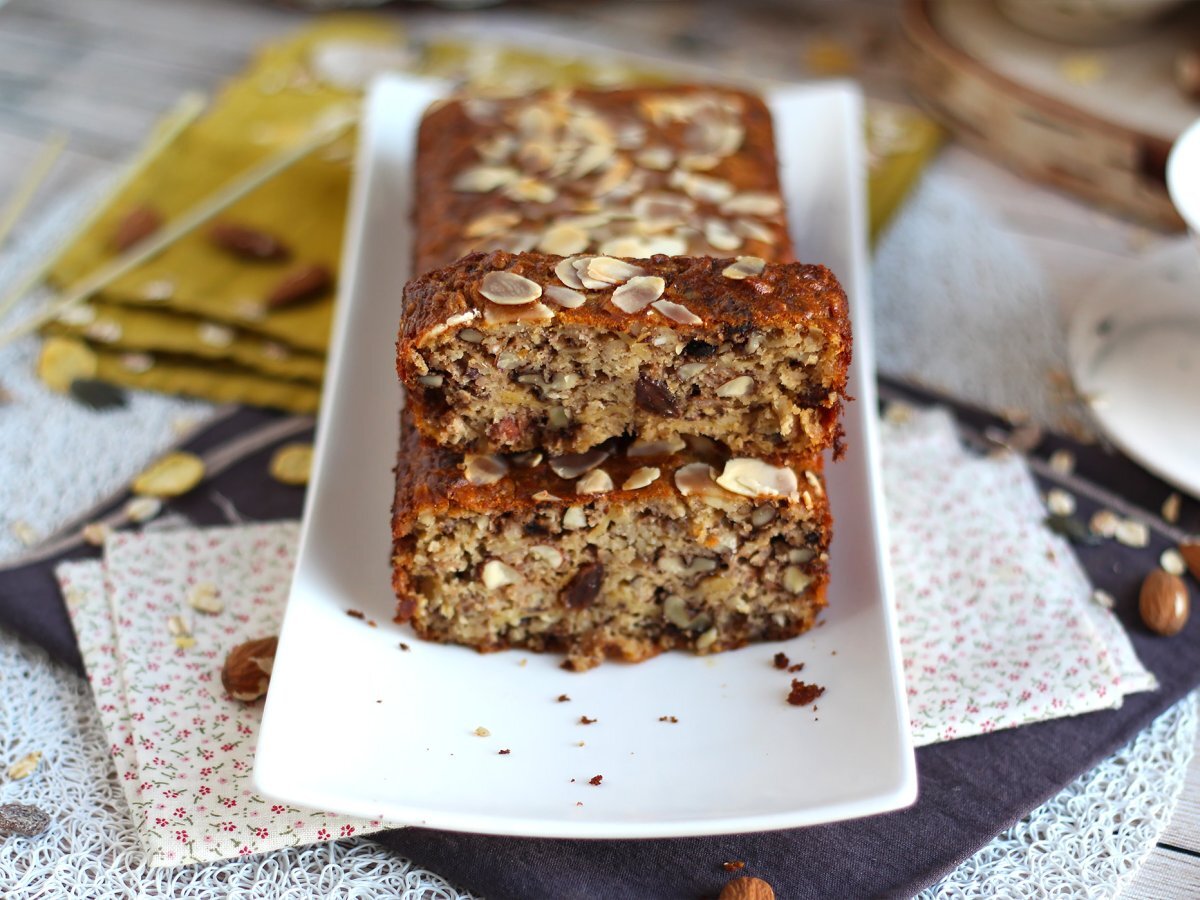 Zerkleinern Sie die Walnüsse und Mandeln, geben Sie alles zur Zubereitung hinzu und vermischen Sie es ein letztes Mal. - Den Teig in eine gebutterte Kuchenform oder eine Silikonform geben. Mit ein paar Mandelblättchen bestreuen und 35 Minuten bei 180°C backen.