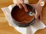 In die mit Backpapier ausgelegte Kuchenform geben (Sie können Rodhoid in die Form geben). Verteilen und füllen Sie die Mischung mit einem Löffel oder einem Glas auf dem Boden der Form. In den Kühlschrank stellen.