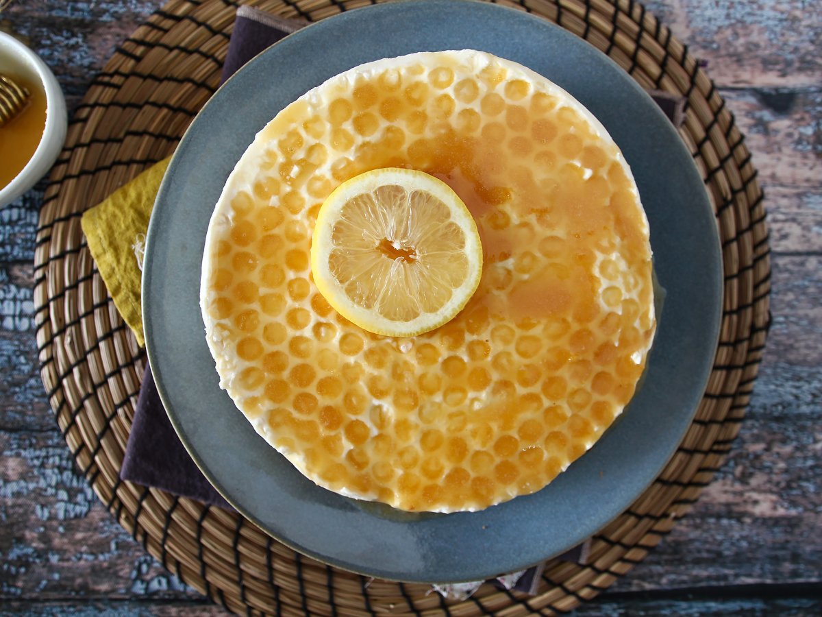 Wir kommen mit einem besonders schmelzenden Dessert nach Hause: dem Käsekuchen! Welche Aromen fügen wir am liebsten hinzu? Säure dank der Zitrone ;-) Damit es wolkenweich wird, fügen wir noch Honig hinzu. Außerdem bieten wir Ihnen eine dekorative Anleitung, um Wabenformen mit Luftpolsterfolie auf Ihrer Torte zu machen! Folgen Sie der Anleitung und genießen Sie es ;-)