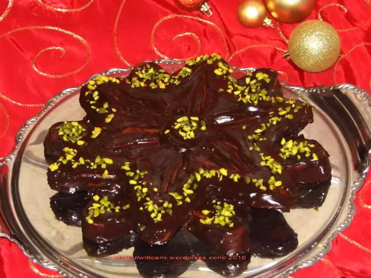 - Schneiden Sie den Lebkuchen-Verbundplatte in kleine Quadrate und Mantel alle Seiten mit Schokolade.