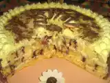 Die erste Kruste, ein Viertel der Schokoladenfüllung, ein Viertel der Flanschdichtung, die zweite Kruste und procedurerepeated drei weitere Male. - Angeordnet Kuchen dekorieren, wie Sie möchten.