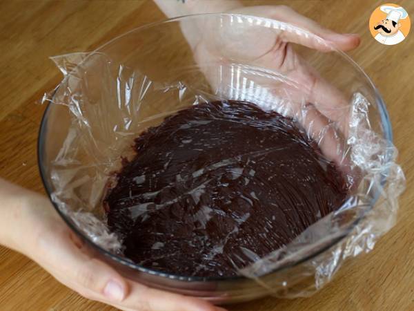 Die Creme in eine Schüssel gießen und bei Kontakt filtern. Mindestens 2 Stunden kühl stellen und dann in einen Spritzbeutel umfüllen.