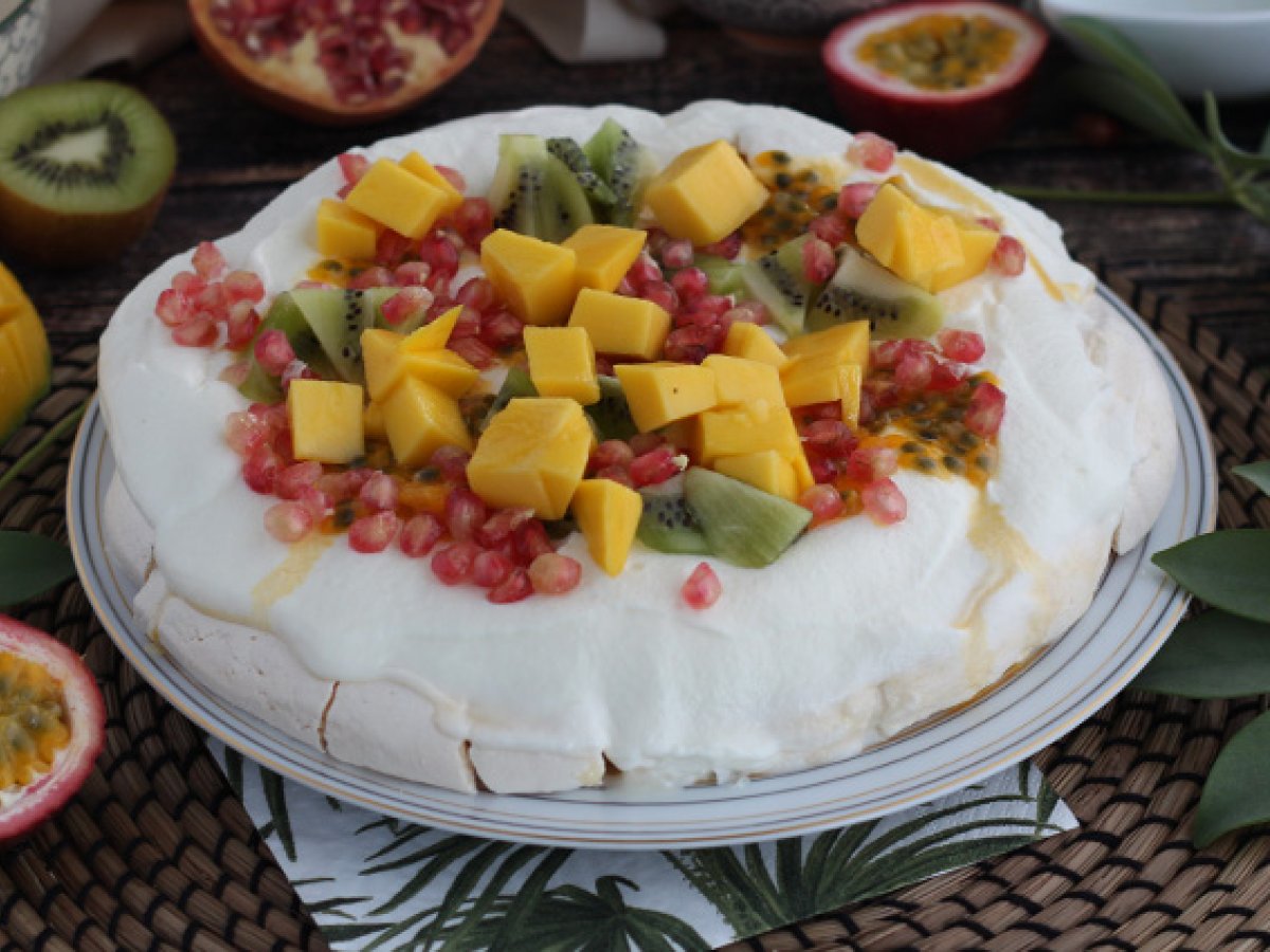 Für ein ultrafruchtiges und farbenfrohes Dessert entscheiden Sie sich für diese Pavlova! Ein knuspriges Baiser, das von Vanille-Schlagsahne überragt wird, auf die Sie Fruchtstücke streuen. Sie müssen zugeben, dass das Lust auf mehr macht :-) Und für alle, die ihren Weizenkonsum reduzieren möchten, sei gesagt, dass dieses Dessert garantiert glutenfrei ist ;-) Eine gute Gelegenheit, sich im Herbst/Winter die Sonne der exotischen Früchte ins Haus zu holen. Und warum nicht den traditionellen Weihnachtsstollen durch dieses exotische Dessert ersetzen, wenn wir schon dabei sind? Wie auch immer, mithilfe unserer Schritt-für-Schritt-Anleitungen können Sie dieses Dessert ganz einfach zu Hause nachkochen. Profitieren Sie von unseren schriftlichen Erklärungen, Fotos und Videos!