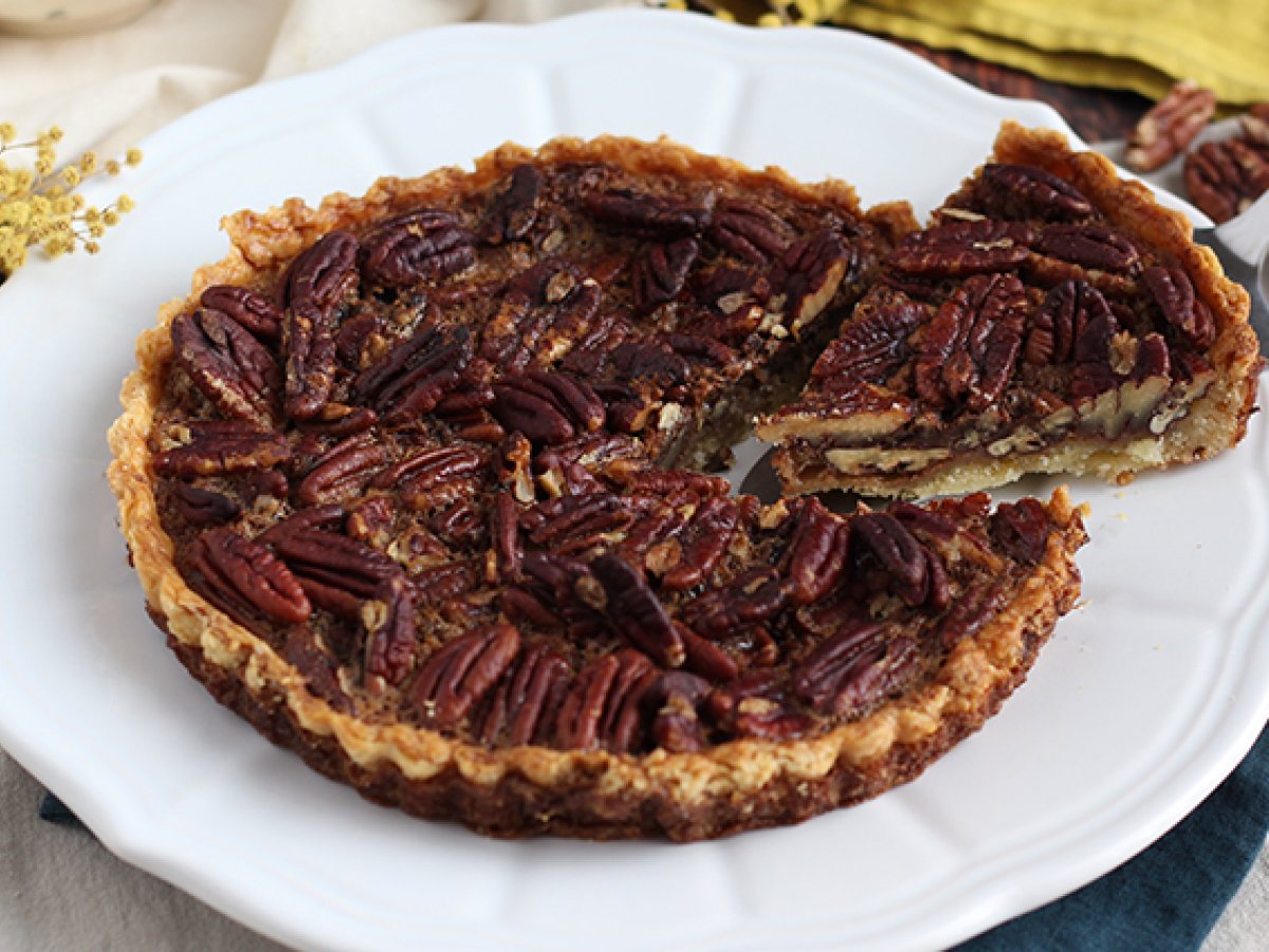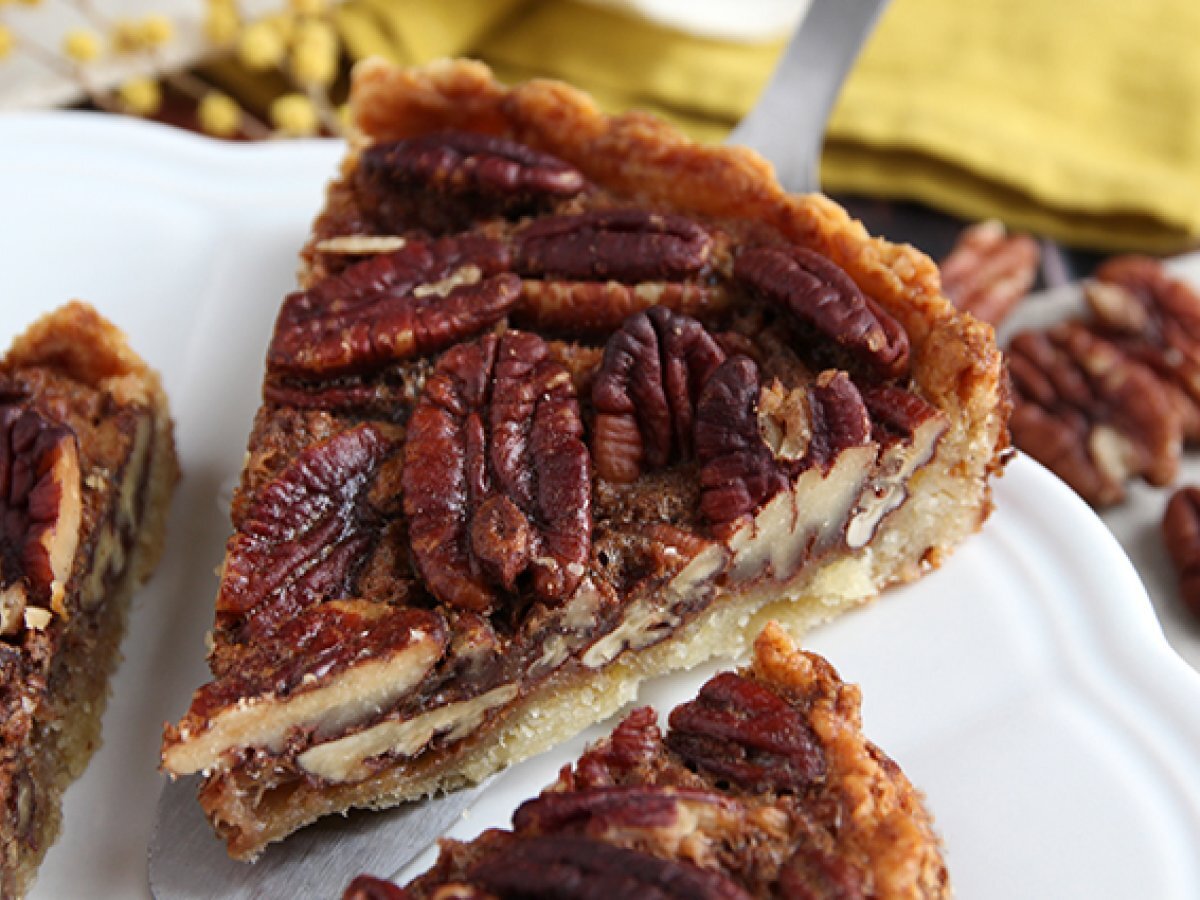 Die Hauptzutaten sind Mehl, Zucker, Butter, Eier, Ahornsirup, brauner Zucker, Pekannüsse und Gewürze wie Zimt und Vanille.