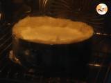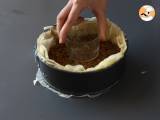Gießen Sie die Mischung in die Form auf dem Filoboden. Mit einem Löffel und dann einem Glas gut verteilen.