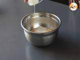 Wenn die Masse schaumig ist (sie bleibt flüssig, das ist normal), alles in die Form gießen.