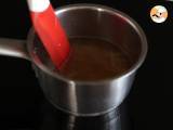 Wasser, Zucker und Honig bei mittlerer Hitze in einen Topf geben. Alles mit einem Spatel vermischen und den Sirup etwa 10 bis 15 Minuten eindicken lassen.