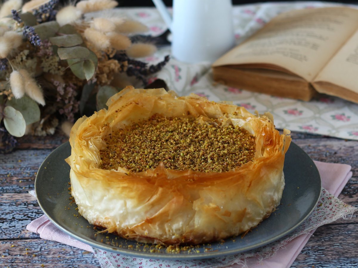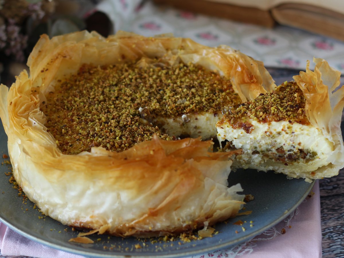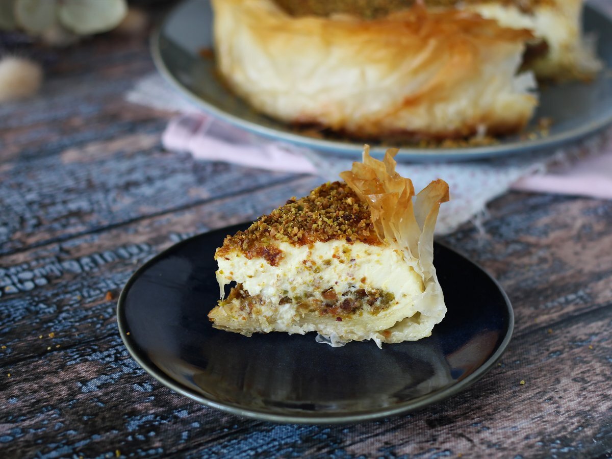 Pistazien-baklava-käsekuchen, knusprig und schmelzend