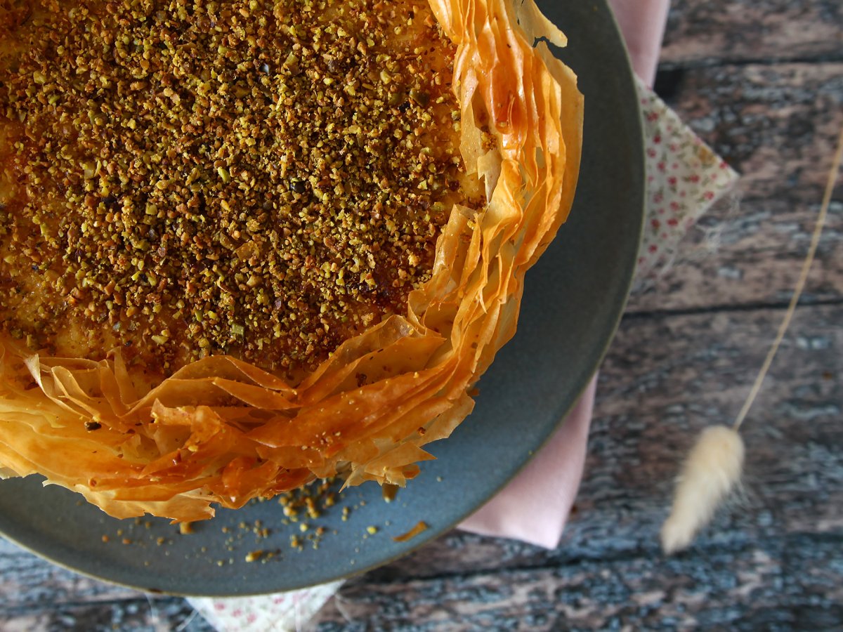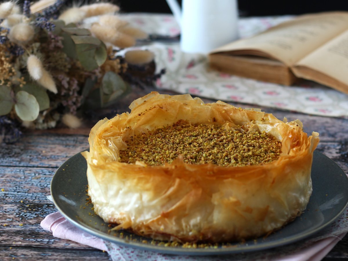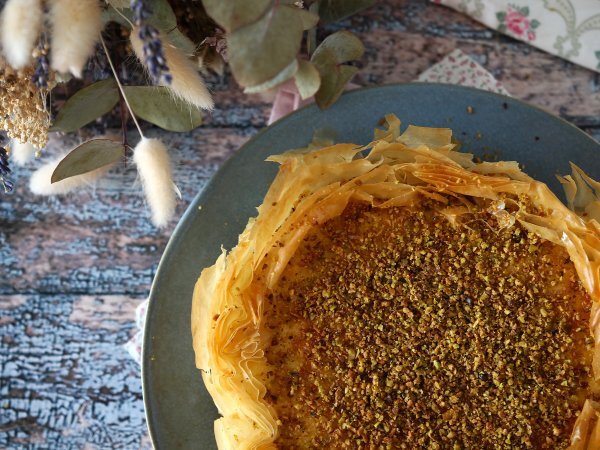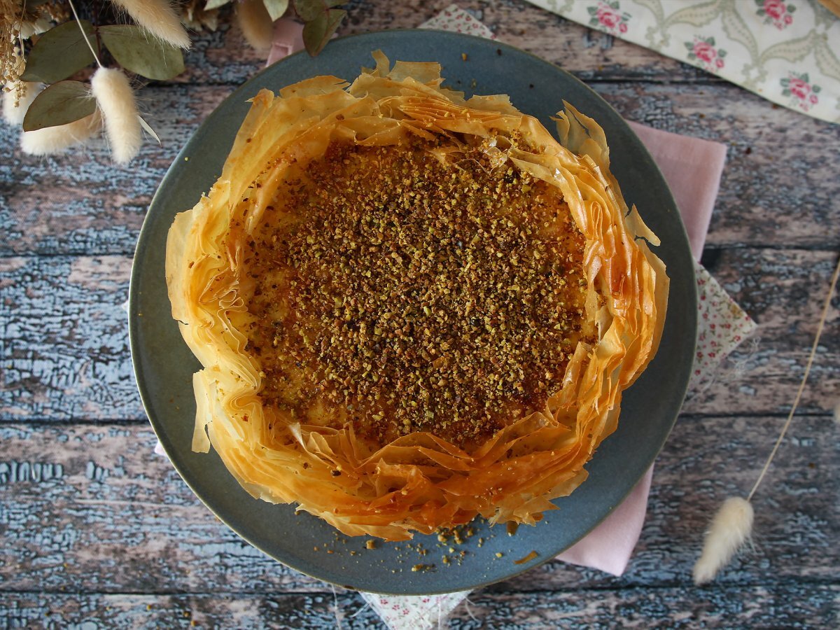 Pistazien-baklava-käsekuchen, knusprig und schmelzend