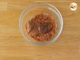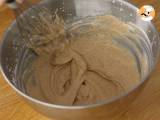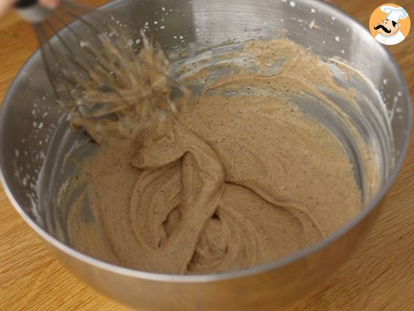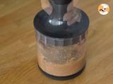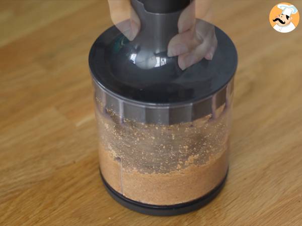 Zerdrücken Sie Ihre Spitzenpfannkuchen in einer Schüssel fein und geben Sie die geschmolzene Schokolade und die Haselnuss-Nougatfüllung hinzu. Vermischen Sie alles gut.