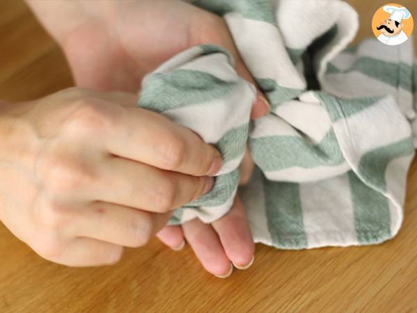In der Zwischenzeit schälen Sie die Haselnüsse für die Dekoration: Legen Sie sie auf ein Backblech und backen Sie sie 15 Minuten lang bei 180 °C im Ofen. Nach dieser Zeit legen Sie sie in ein Tuch und reiben sie gut ab. Die meisten Haselnüsse sollten geschält sein.