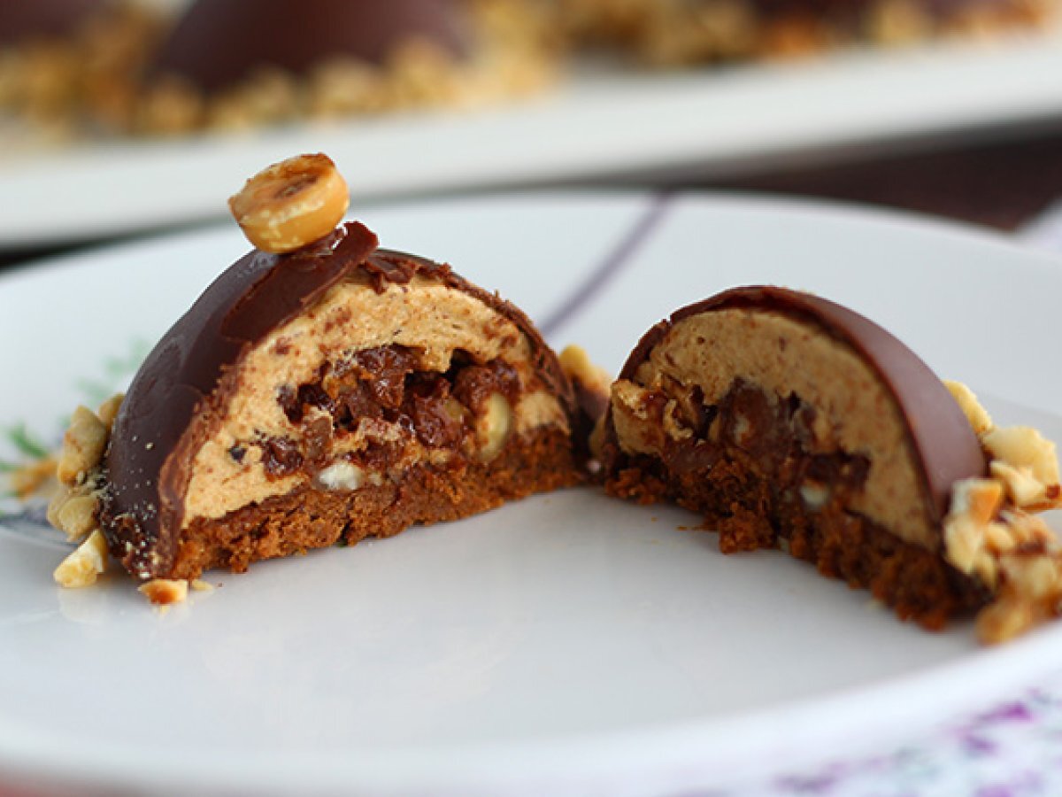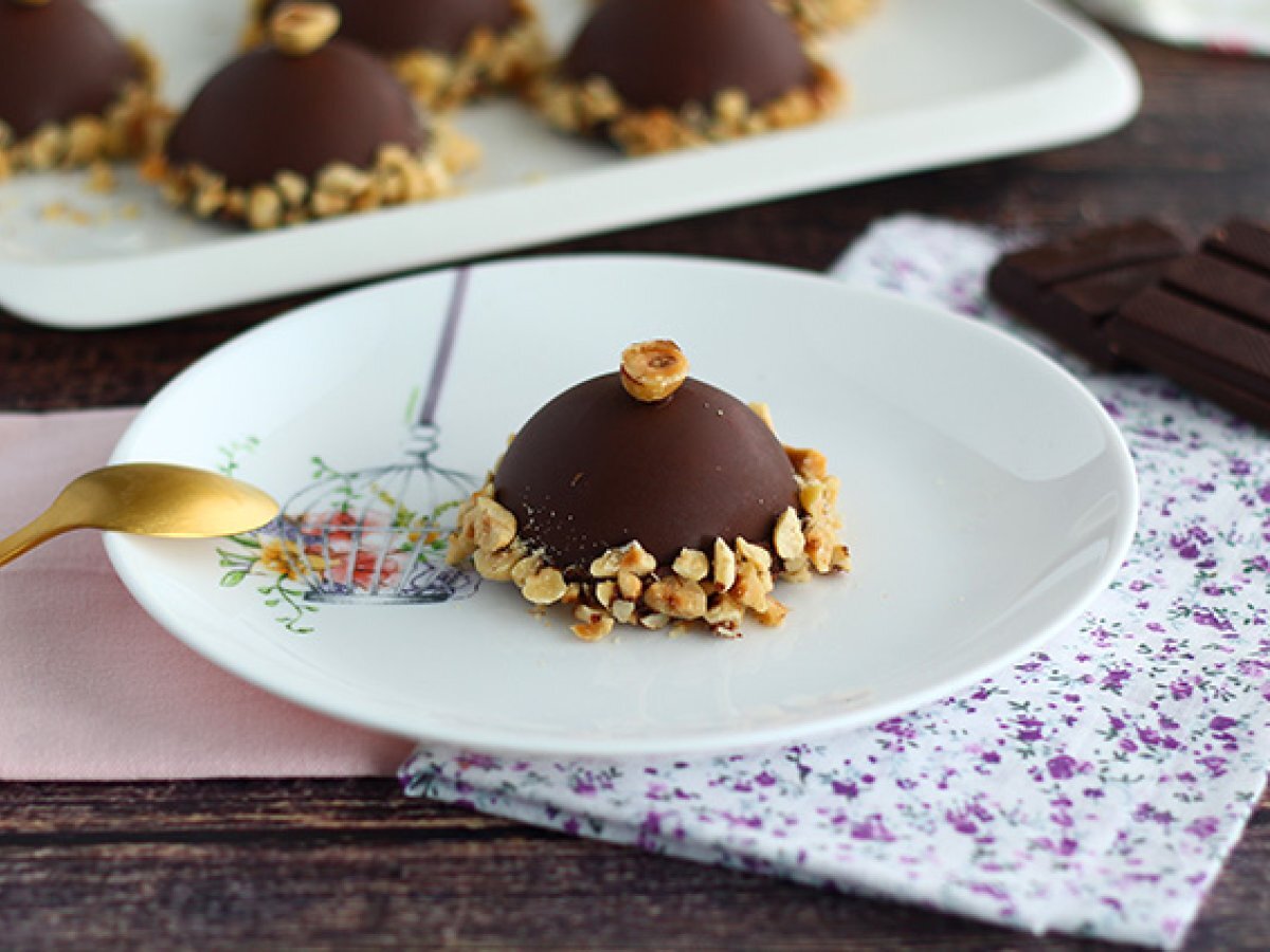 Haben Sie Lust, Ihre Gäste zum Dessert zu beeindrucken? Unsere Kuppelrocker nach Ferrero-Art werden sie garantiert erobern! Dieses Dessert, das Schokolade, Haselnüsse und Nougat vereint, eignet sich perfekt als Abschluss eines festlichen Essens (Weihnachten, Neujahr, Geburtstag...). Ups, Sie haben keine Eier mehr? Kein Problem, dieses Rezept enthält keine Eier! Da freuen sich auch Intolerante und Allergiker ;-) Jetzt müssen Sie nur noch Ihren Mixer und Silikonformen herausholen, wir begleiten Sie Schritt für Schritt mit unserem ausführlichen Rezept ↓.