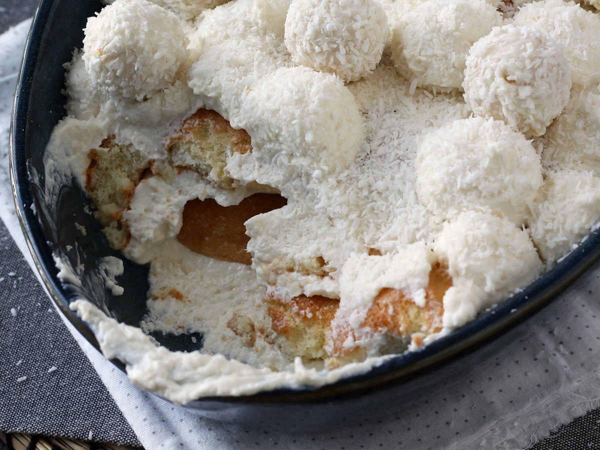 Raffaello-tiramisu mit gutem kokosnussgeschmack