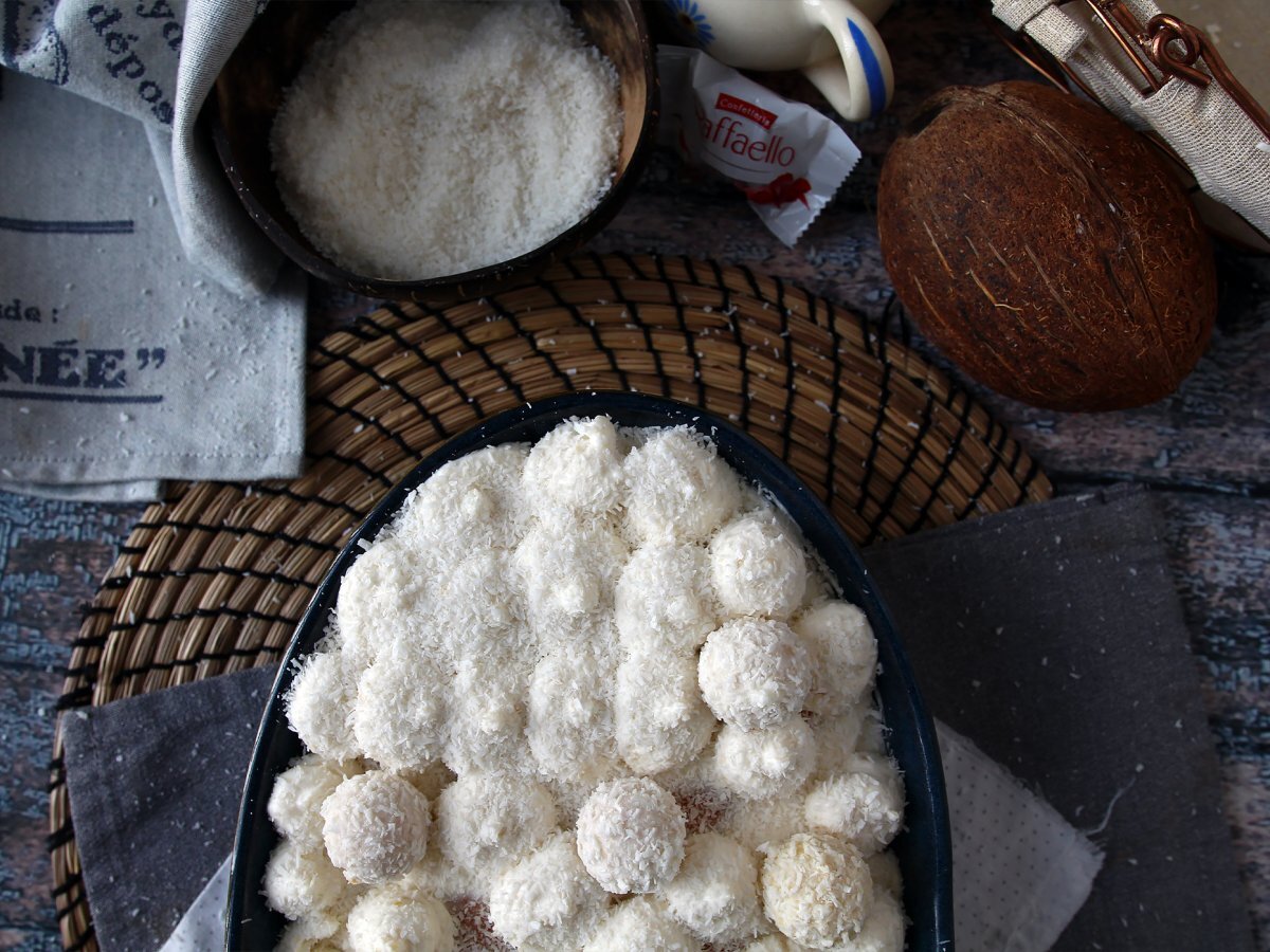 Unsere Liebe für Kokosnussdesserts ist nicht mehr zu übersehen... Ob in Gläsern, als Kuchenrolle oder sogar als Pudding - diese süße Frucht eignet sich für eine ganze Reihe von süßen Rezepten, die wir lieben! Und doch glauben wir heute, unser Lieblingsdessert mit Kokos gefunden zu haben: Tiramisu mit Raffaello! Diese kleinen knusprigen Kügelchen aus Waffeln, weißer Schokolade, Mandeln und Kokosnuss sind unwiderstehlich, und kombiniert mit der Köstlichkeit eines wolkensüßen Tiramisu? Sie werden uns ganz bestimmt davon berichten :-) (Und wenn Sie Ihren Raffaello zu Hause nachmachen möchten, können Sie hier klicken).