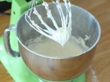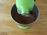 Reduzieren Sie die Geschwindigkeit auf 2 und geben Sie nach und nach abwechselnd die Mehl-Kakao-Mischung und die Milch-Zitronen-Mischung hinzu.